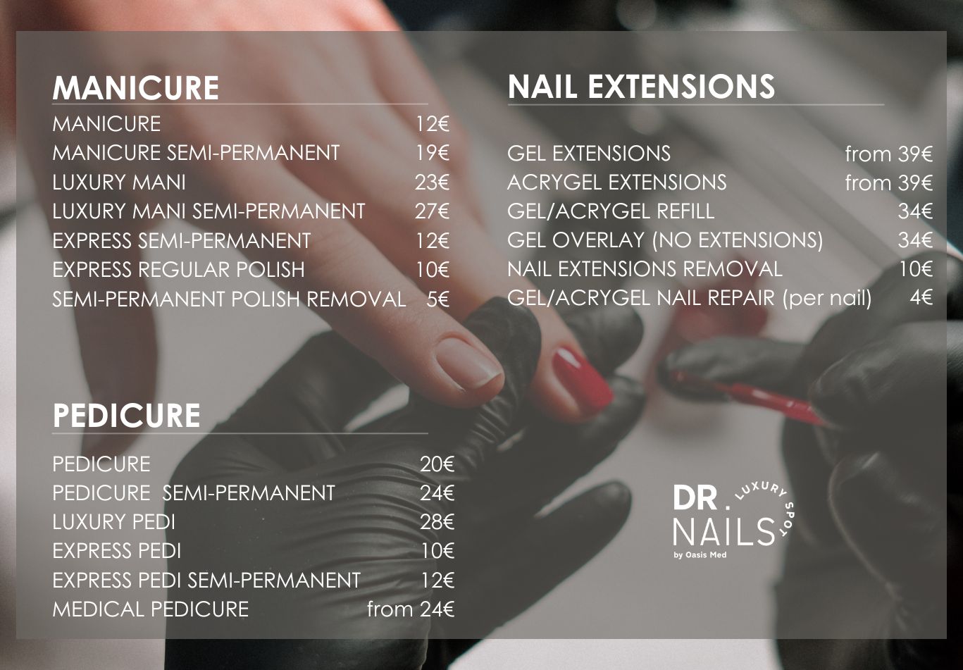 DR. NAILS by Oasis Med offers a wide range of artificial nail options to extend and strengthen your natural nails, using high-quality materials. Experience acrygel and enjoy an excellent and professional result!